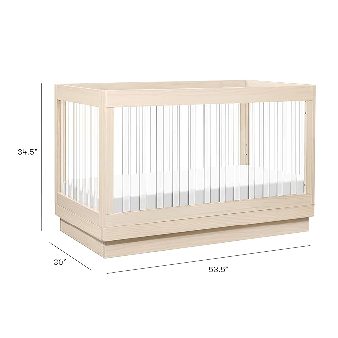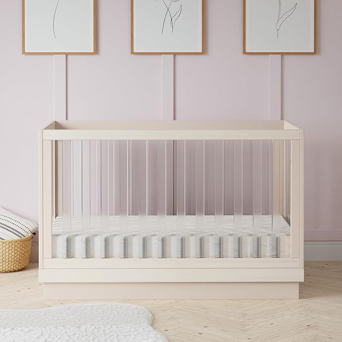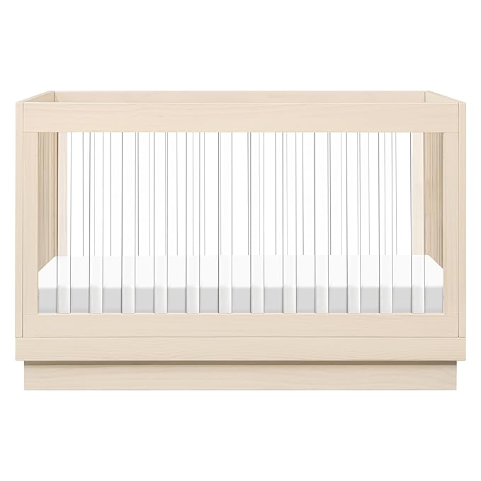 Babyletto Harlow Acrylic 3-in-1 Convertible Crib with Toddler Bed Conversion Kit in Washed Natural with Acrylic Slats, Greenguard Gold Certified
