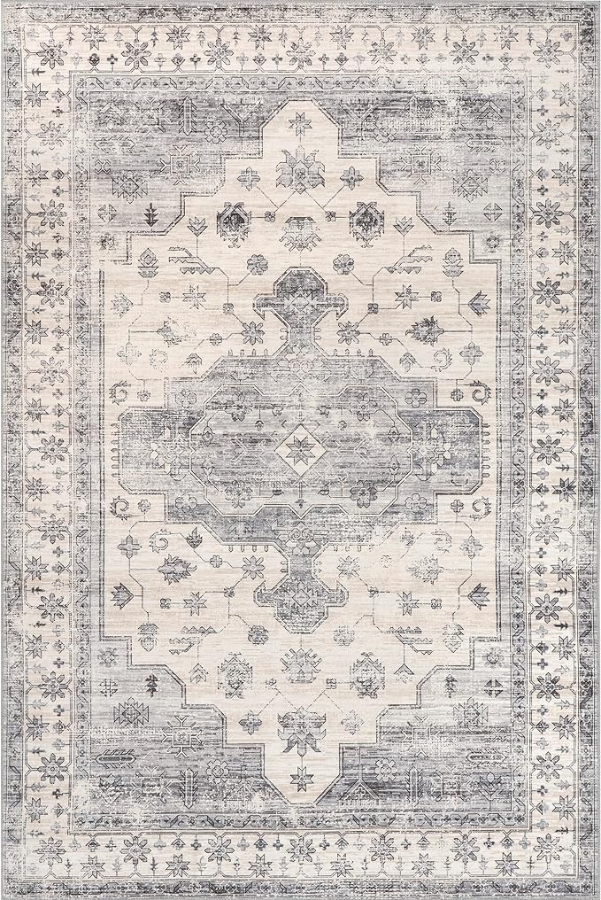 nuLOOM 5x8 Machine Washable Rain Haven Vintage Medallion Area Rug, Light Grey, Traditional Faded Design, Non-Slip Backing, Stain Resistant, For Bedroom, Dining Room, Living Room, Kitchen