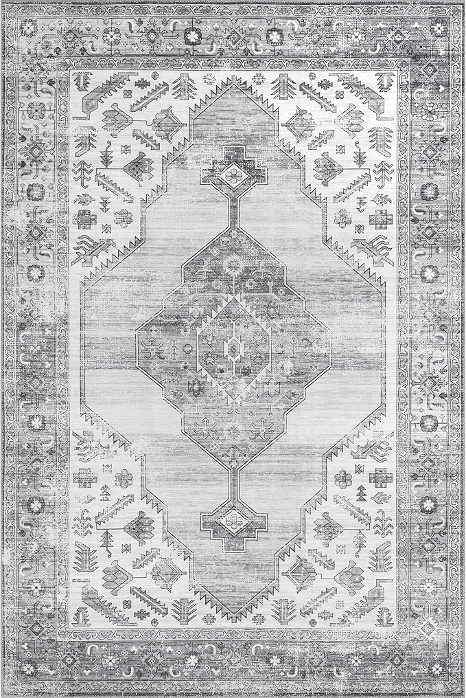 nuLOOM Gracie Distressed Medallion Machine Washable Ultra Thin Area Rug, 5x8, Grey