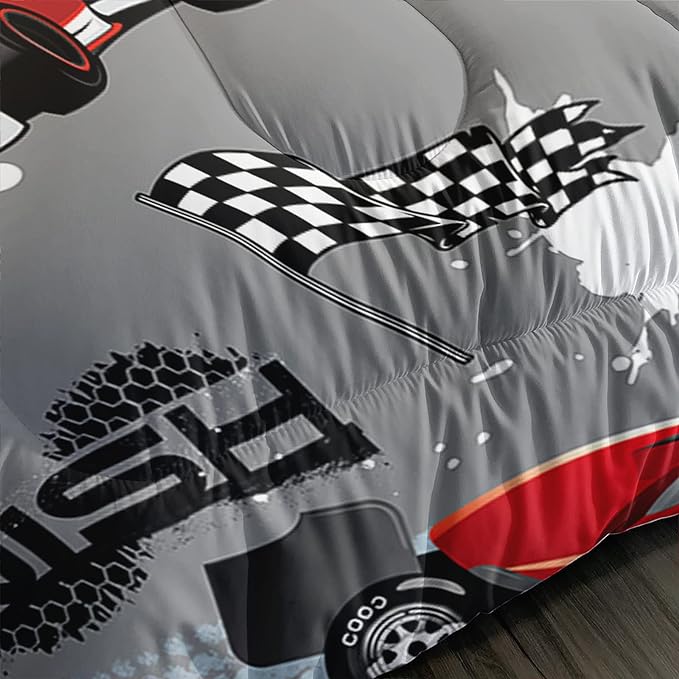Axolotl Kid Comforter Set Queen Size,Racing Car Bedding Set for Boys Girls Teen Car Racing Gifts,Race Cars Quilt Bed Set with 1 Comforter 2 Pillowcases,Red Grey