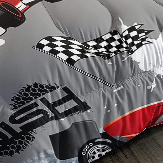 Axolotl Kid Comforter Set Twin Size,Racing Car Bedding Set for Boys Girls Teen Kids Children Car Racing Gifts,Race Cars Quilt Bed Set with 1 Comforter 2 Pillowcases,Red Grey