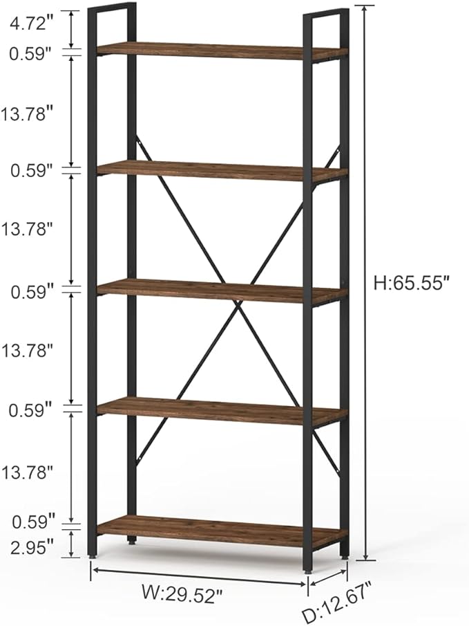 BON AUGURE Industrial Bookshelf, Etagere Bookcases and Book Shelves 5 Tier, Rustic Wood and Metal Shelving Unit (Rustic Oak)
