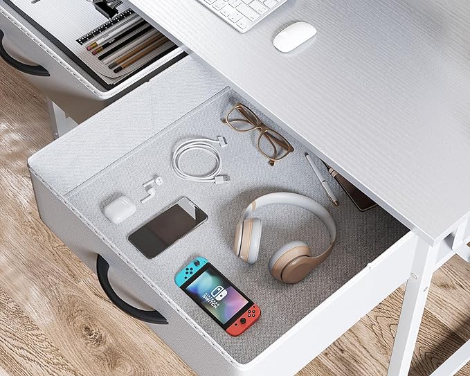 ODK Small Desk with Fabric Drawers- for Bedroom, White Vanity Desk with Storage, Home Office Computer Desk for Small Spaces, 32 Inch Modern Work Writing Study Table, White