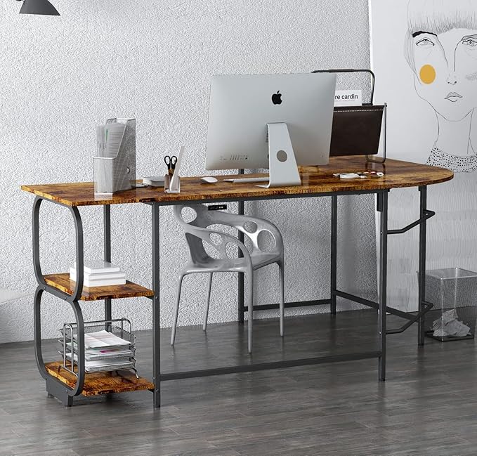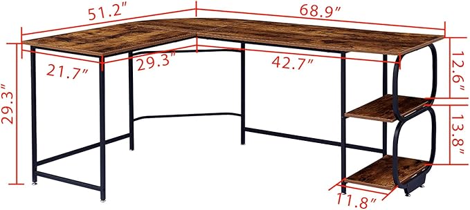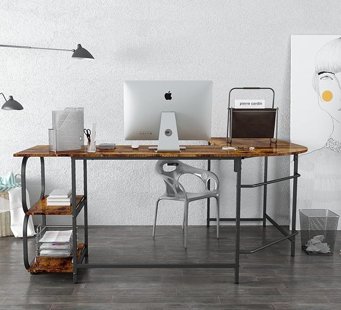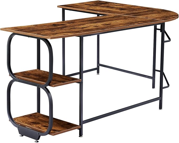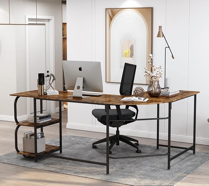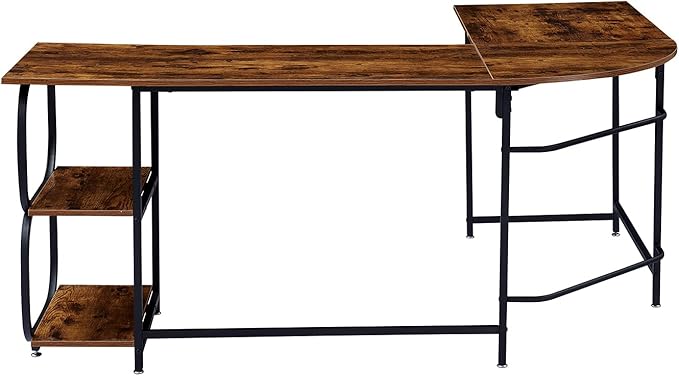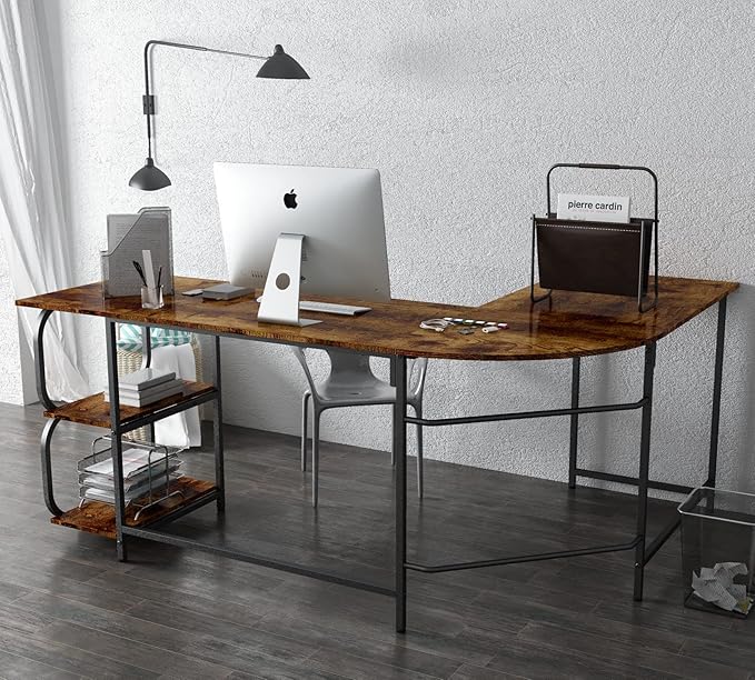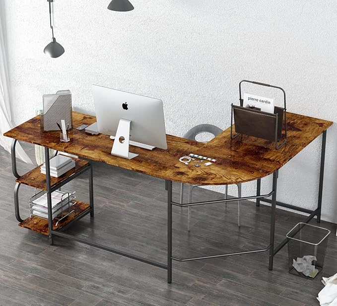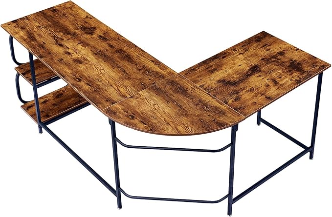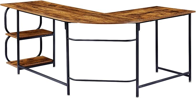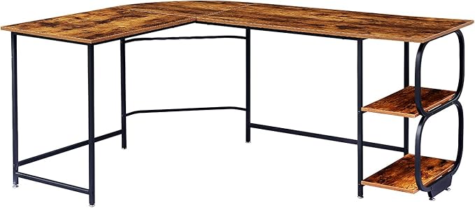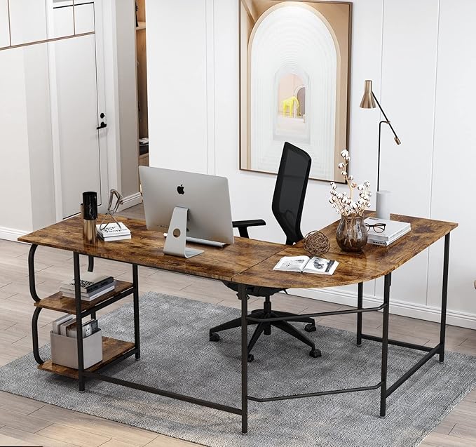 Anivia 68.9" Reversible L Shaped Desk with Storage Shelves - Corner Computer Desks Gaming Table Workstation for Home Office, Writing, Study, Caramel Brown