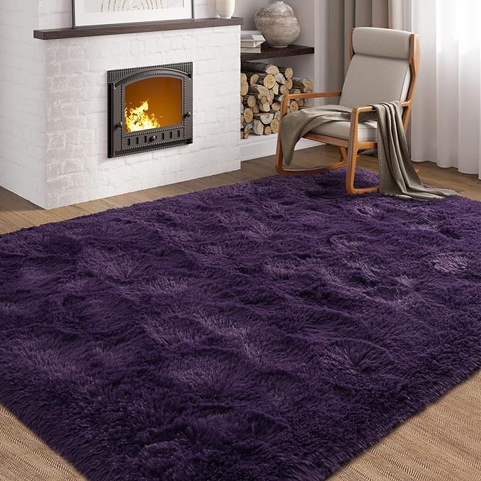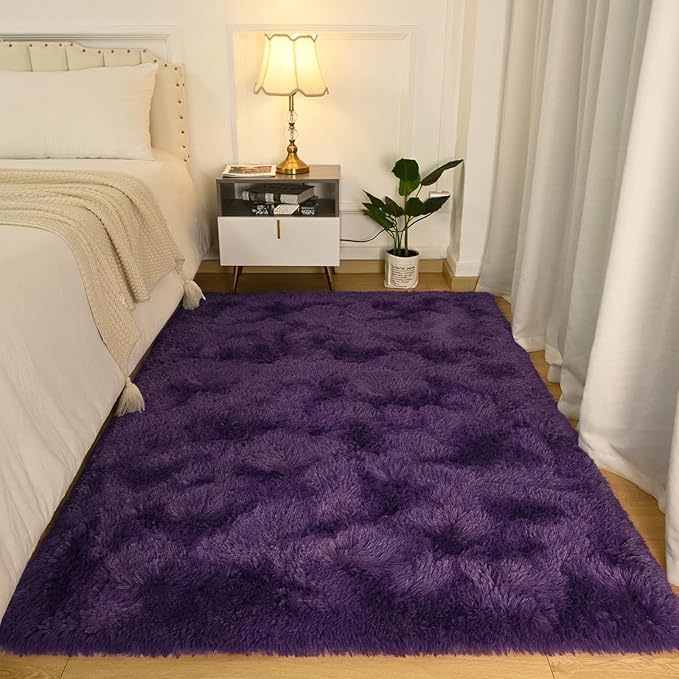 Softlife Rug for Bedroom 4x5.3 Feet Area Rug for Living Room Super Soft Shaggy Rugs for Kids Room Fluffy Fuzzy Carpets Long Plush Bedside Rug Nursery Christmas Home Decoration for Boys Girls, Purple