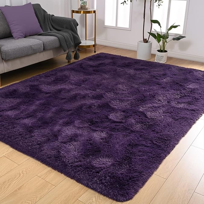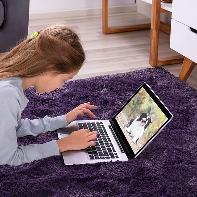 Softlife Rug for Living Room 5.3x7.6 Feet Area Rug for Bedroom Super Soft Shaggy Rugs for Kids Room Fluffy Fuzzy Carpets Long Plush Bedside Rug Nursery Christmas Home Decoration for Boys Girls, Purple