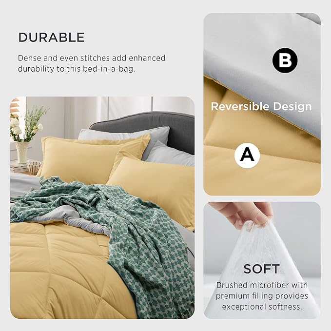 Bedsure Yellow Twin Comforter Set - 5 Pieces Reversible Twin Bed in a Bag, Extra Long Twin Bed Set with Comforters, Sheets, Pillowcase & Sham, Twin Bedding Sets for College