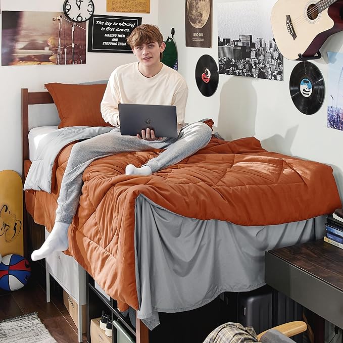 Bedsure Burnt Orange Twin Comforter Set - 5 Pieces Reversible Twin Bed in a Bag, Extra Long Twin Bed Set with Comforters, Sheets, Pillowcase & Sham, Twin Bedding Sets for College