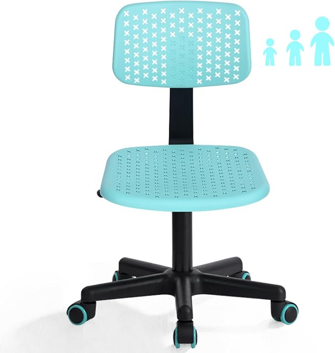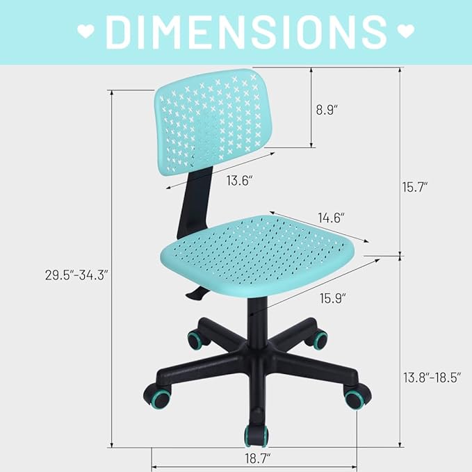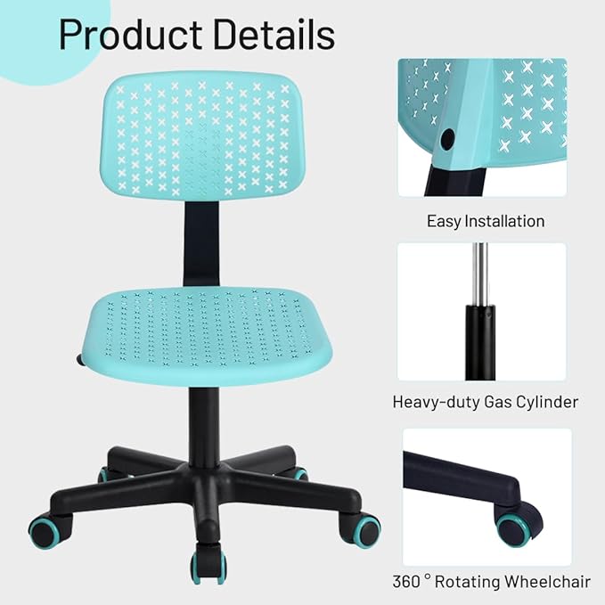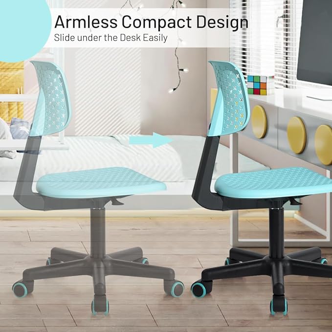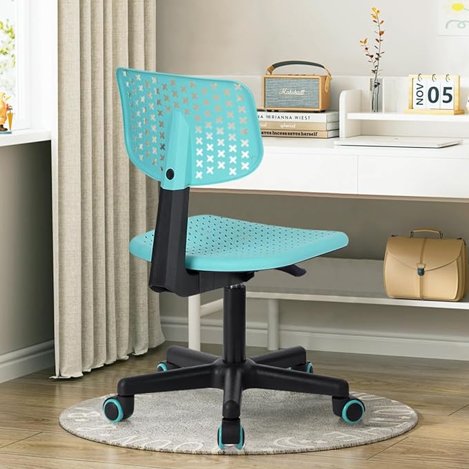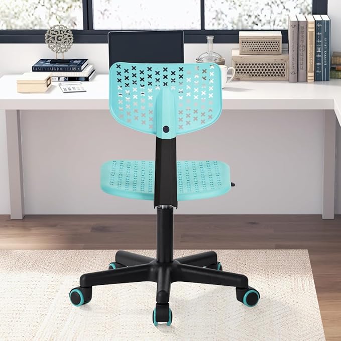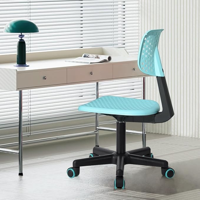 Desk Chair Armless Cute Office Chair, Low Back Rolling Home Office Task Chair Adjustable Swivel Study Chair for Girls Teens Adults Children Kids, Turquoise