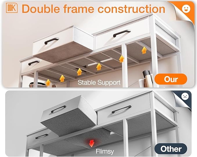 ODK Office Small Computer Desk: Home Table with Fabric Drawers & Storage Shelves, Modern Writing Desk, White, 48"x16"