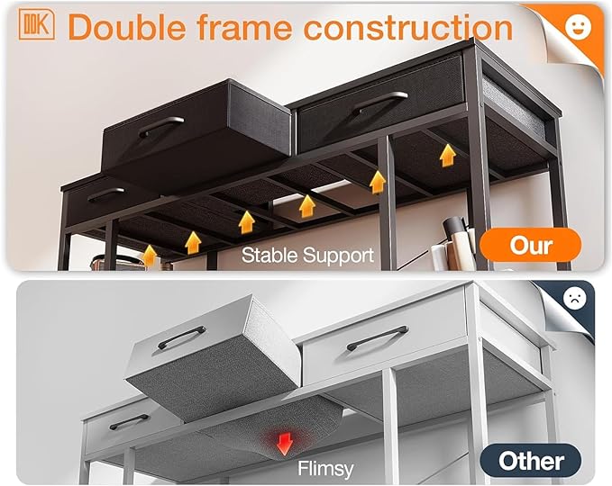 ODK Office Small Computer Desk: Home Table with Fabric Drawers & Storage Shelves, Modern Writing Desk, Black, 48"x16"