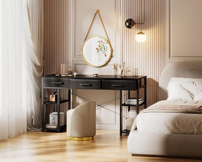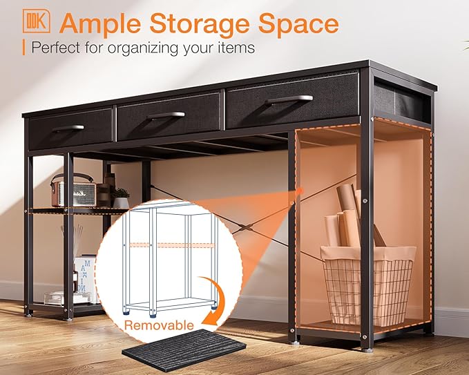 About This 【Large Storage Capacity Desk with Drawers】This desk table is designed with 3 easy to assemble fabric drawers that...