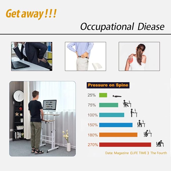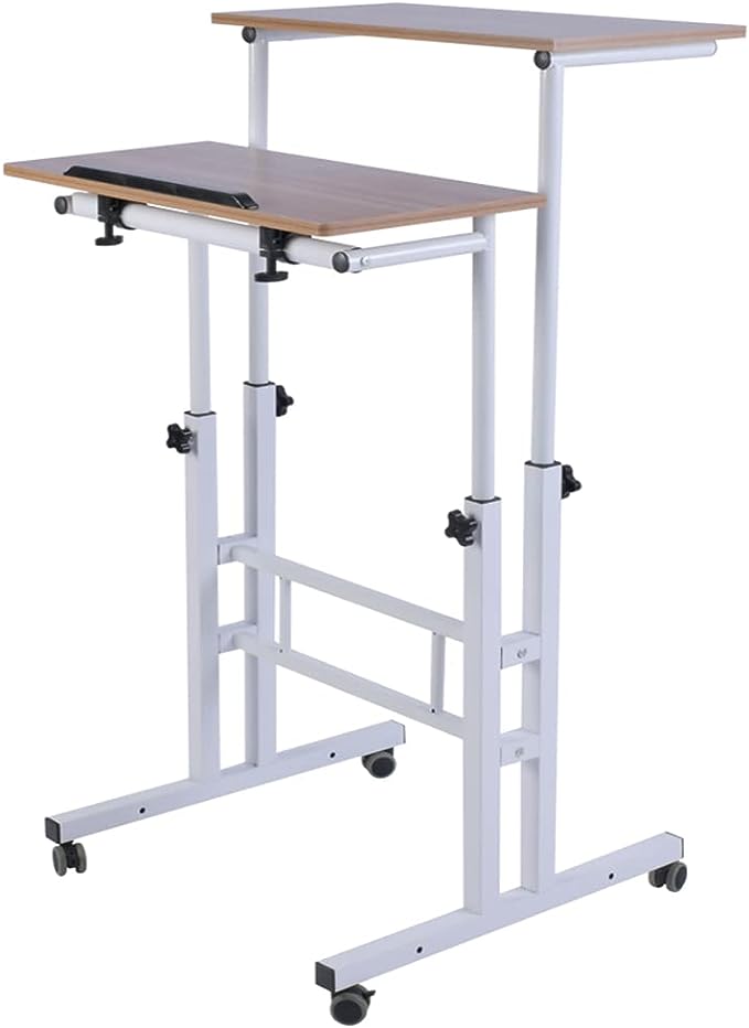 AIZ Mobile Computer Desk with Rolling Wheels for Home Office Workstation, Portable Laptop Tall Table for Standing or Sitting, Adults or Children,Oak, OneSize