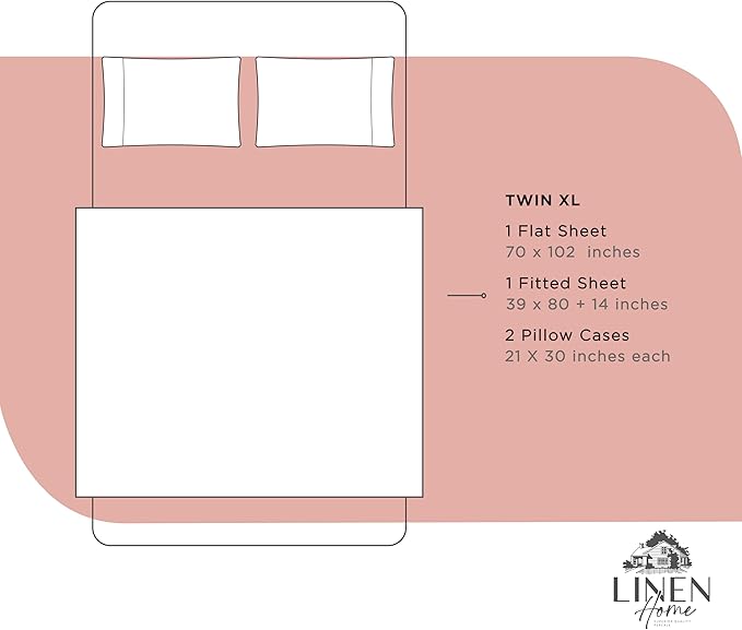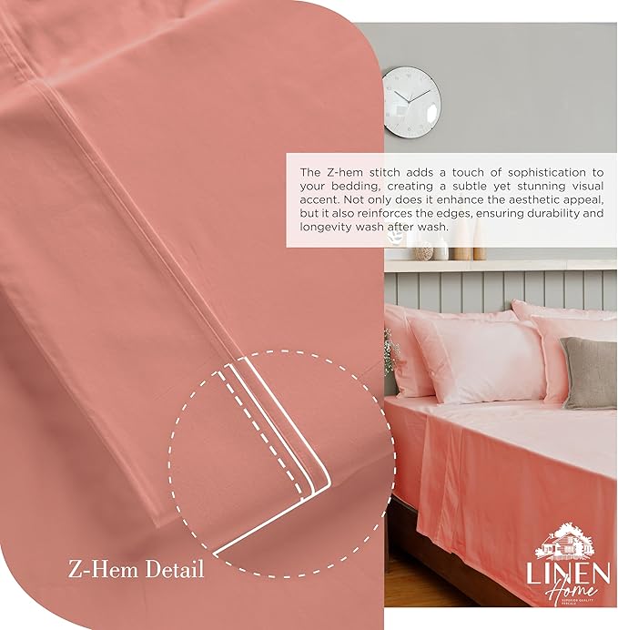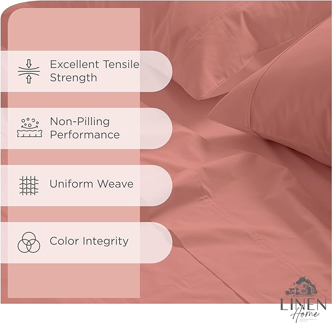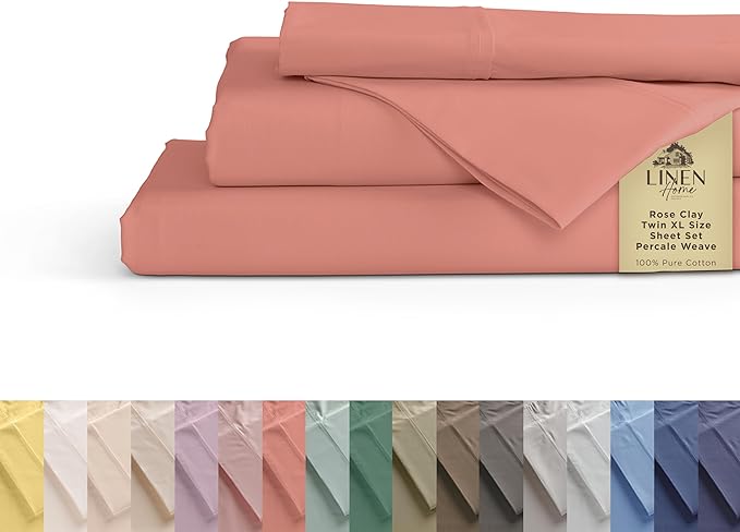 100% Cotton Percale Sheets Twin XL Size, Rose Clay, Deep Pocket, 4 Pieces Sheet Set - 1 Flat, 1 Deep Pocket Fitted Sheet and 2 Pillowcases, Crisp Cool and Strong Bed Linen