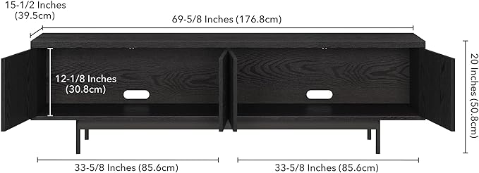 Henn&Hart Whitman TV Stand, 70" Wide, Black