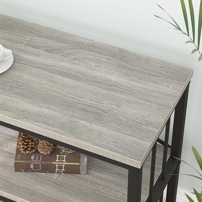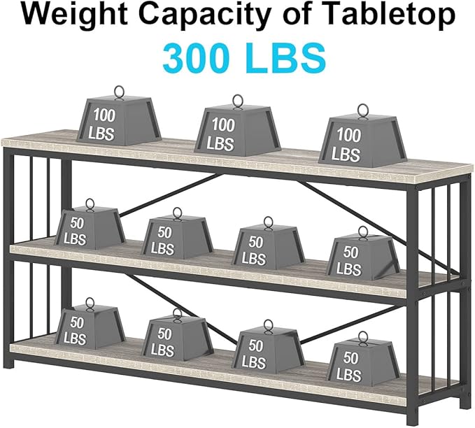 IBF Low Long Horizontal Bookshelf, Industrial Modern 3 Tier Etagere Bookcase, Large Wide Open Rustic Metal and Wood Grey Book Shelf for Bedroom Living Room Home Office Storage, Light Grey Oak, 63 Inch