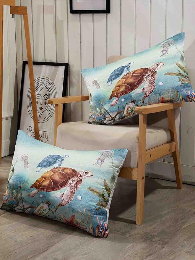 Datura home Sea Turtle Bedding Comforter Set for Boys Girls Teens Children Adults,Watercolor Sea Creatures Blue Ocean Theme Bedding Set with 1 Comforter and 2 Pillowcases(Turtle Twin) Blue Turtle