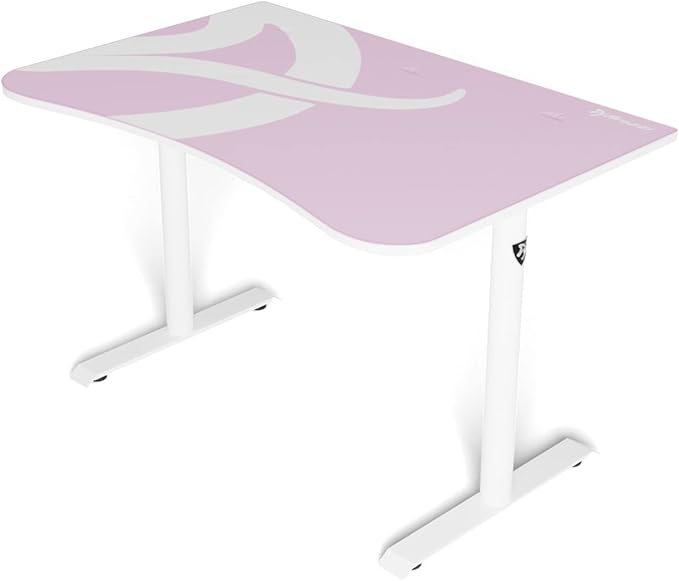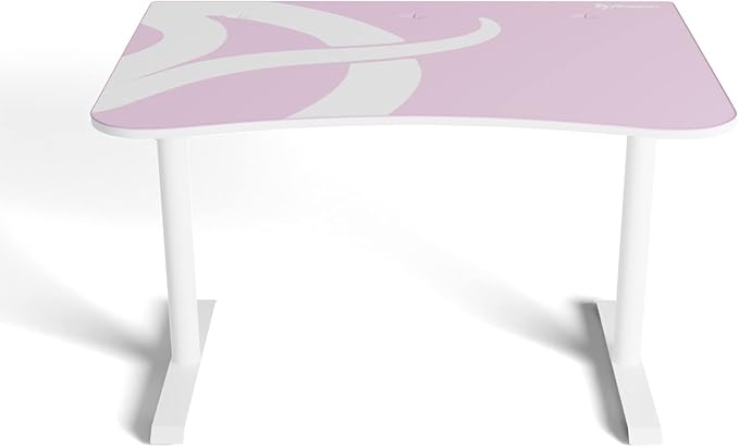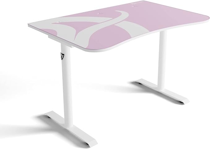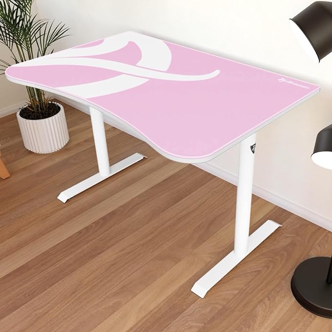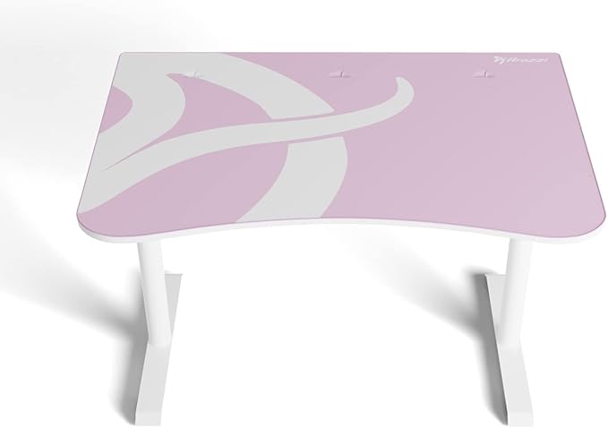 Arozzi Arena Fratello Curved Gaming and Office Desk with Full Surface Water Resistant Desk Mat Custom Monitor Mount Cable Management Cut Outs Under The Desk Cable Management Netting - Pink