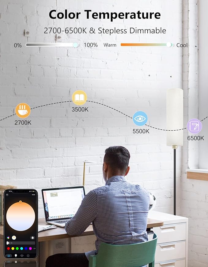 About This 🗣【Multiple Control Ways】E26 Smart Bulb working with Alexa, Google Home and Siri to help you adjust brightness, hands-free!...