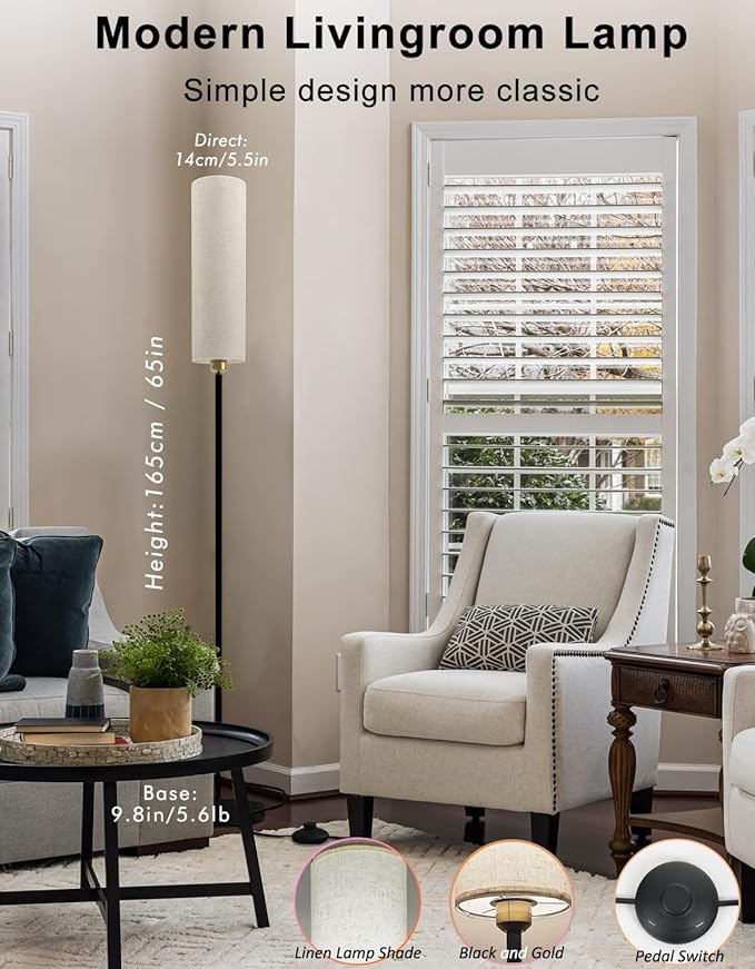 Smart Floor Lamp Works with Alexa & Google Home, Color Changing Stepless Dimmable for Living Room, Modern Standing WiFi Lamps with Remote, Minimalist Pole Lamp Tall Lights for Bedroom, Office-Black