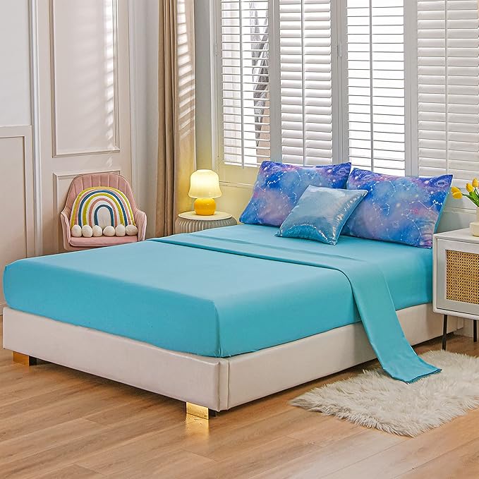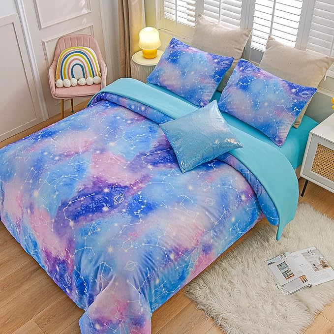 Btargot Lightweight Microfiber 6 Piece Comforter Set, Tie Dye Galaxy Constellation Pattern Bedding Set for Boys Girls Teen, Queen Blue Purple