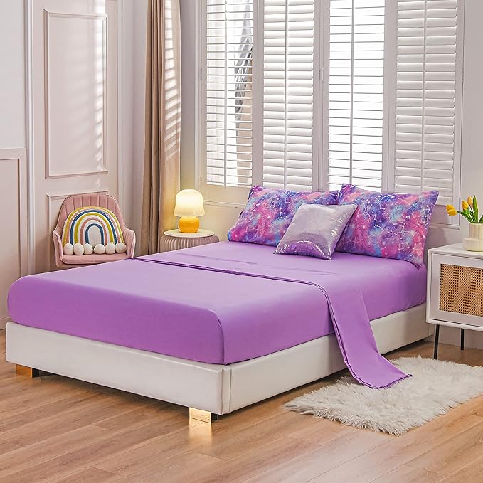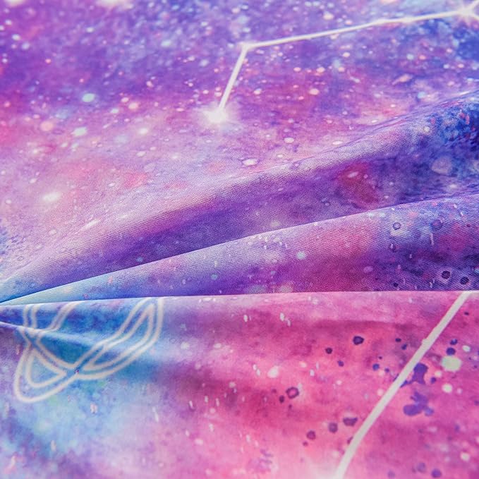 Btargot Lightweight Microfiber 6 Piece Comforter Set, Tie Dye Galaxy Constellation Pattern Bedding Set for Boys Girls Teen, Queen Purple