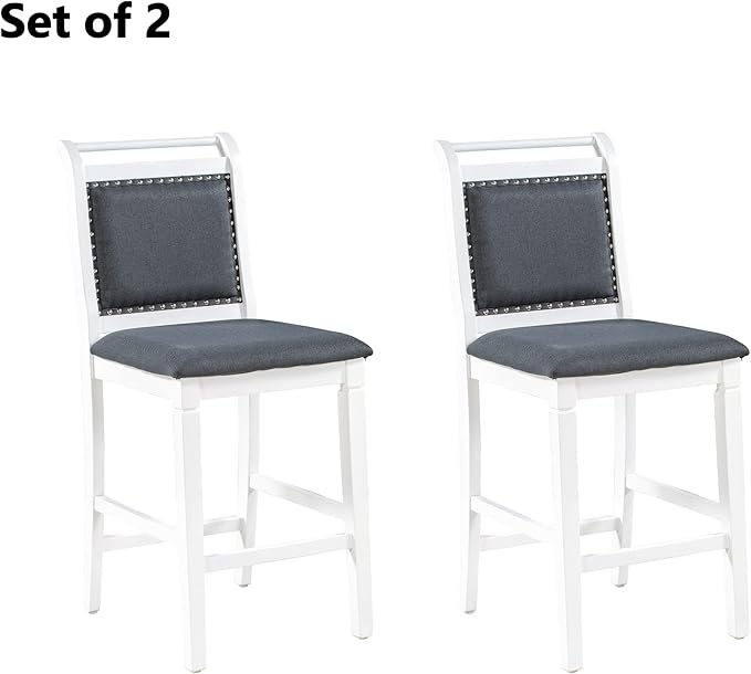 Merax 3-Piece Wood Counter Height Drop Leaf Dining Table Set with 2 Upholstered Chairs for Small Place, Grey
