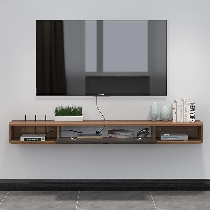 About This 【Maximize Your Space】: Our modern floating TV shelf offers ample storage without taking up valuable floor space. Display...