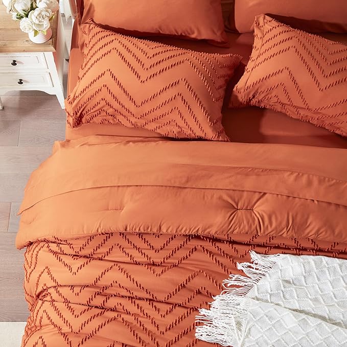 Anluoer Twin Comforter Set, Burnt Orange Tufted Bed in a Bag 5 Pieces with comforters and sheets, All Season Bedding Sets with 1 Comforter, 1 PillowShams, 1 Pillowcases, 1 Flat Sheet, 1 Fitted Sheet