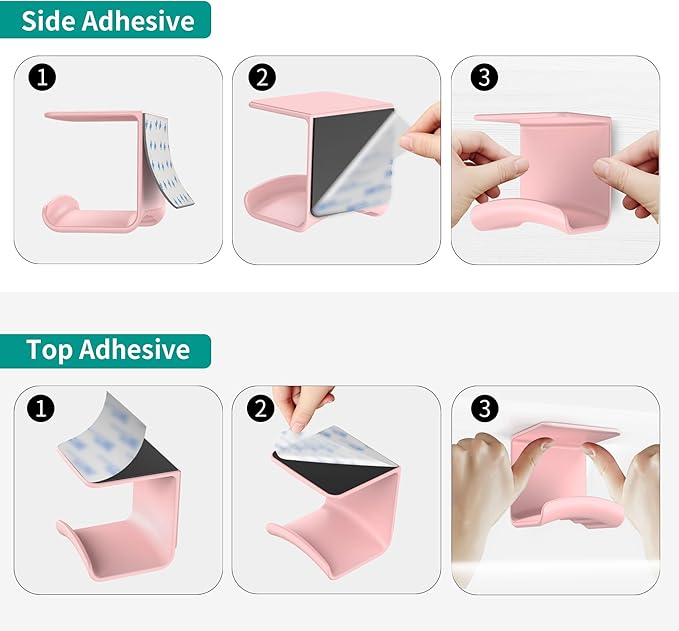 HomeMount Headphone Hook Under Desk - Headphone Holder Under Table, Adhesive Gaming Headphone Stand Hanger Desk Mount for Most Headphone (Pink)