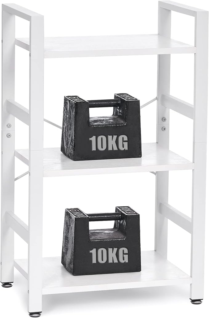BEWISHOME 3 Tier Bookshelf, White Small Bookshelf for Small Spaces, Short Wooden Storage Bookcase with Metal Frame for Bedroom Living Room and Home Office JCJ62W