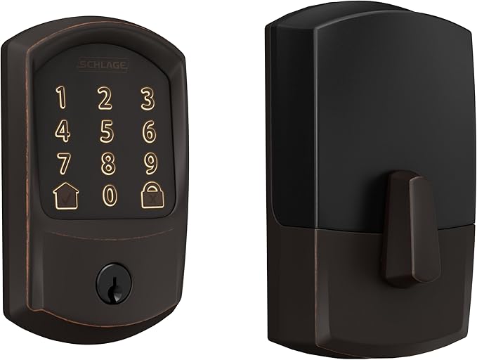 SCHLAGE BE489WB GRW 716 Encode WiFi Deadbolt Smart Lock, Keyless Entry Touchscreen Door Lock with Greenwich Trim, Aged Bronze