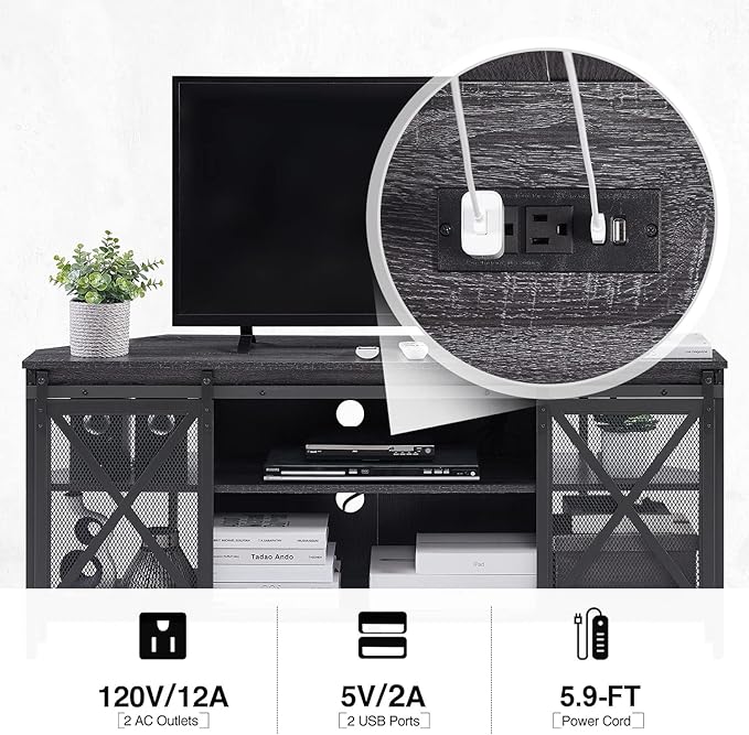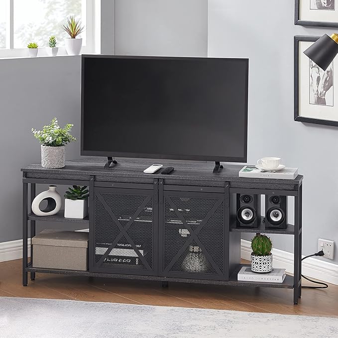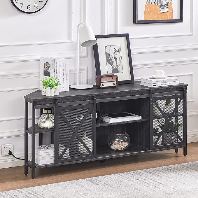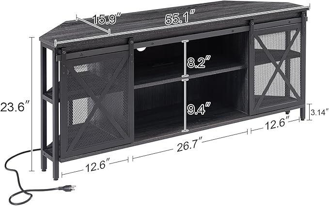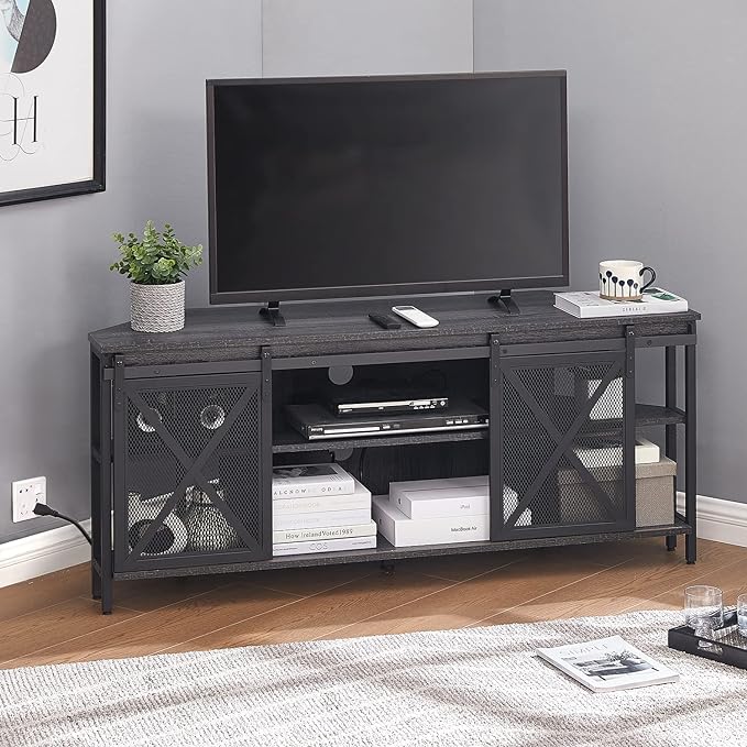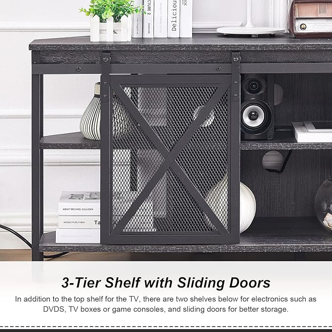 HOMISSUE Corner TV Stand, Corner TV Stand for 55 60 Inch TV, Industrial & Farmhouse Corner Entertainment Center w/Sliding Barn Door, Corner TV Cabinet for Living Room, Grey