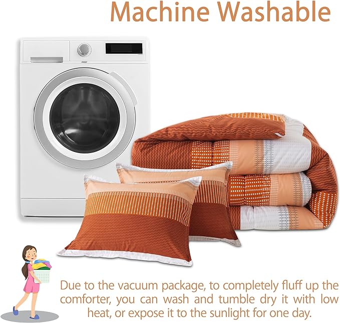 Andency Stripe Comforter Set Queen Size (90x90 Inch), 3 Pieces Terracotta Patchwork Striped Comforter, Soft Microfiber Down Alternative Comforter Bedding Set with Corner Loops