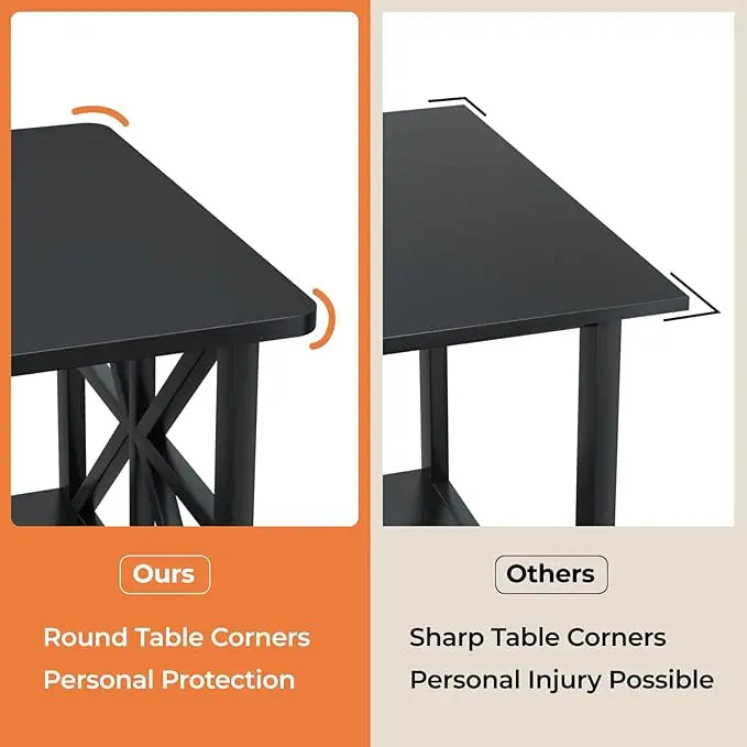 GreenForest Coffee Table with Round Corner, Farmhouse Center Table with 2-Tier Storage Shelf X-Frame Design for Living Room, 39 inch Black