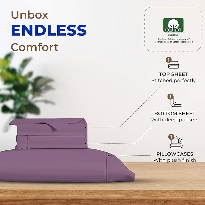 THREAD SPREAD Luxury Egyptian Cotton Sheets Twin XL Size - 600 Thread Count 3 PC Twin XL Sheets Deep Pockets, Extra Soft, Cooling Extra Long Staple Sateen Weave College Dorm Bedding Twin XL - Plum