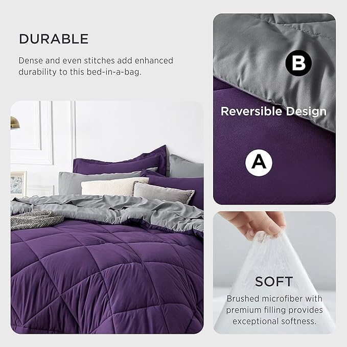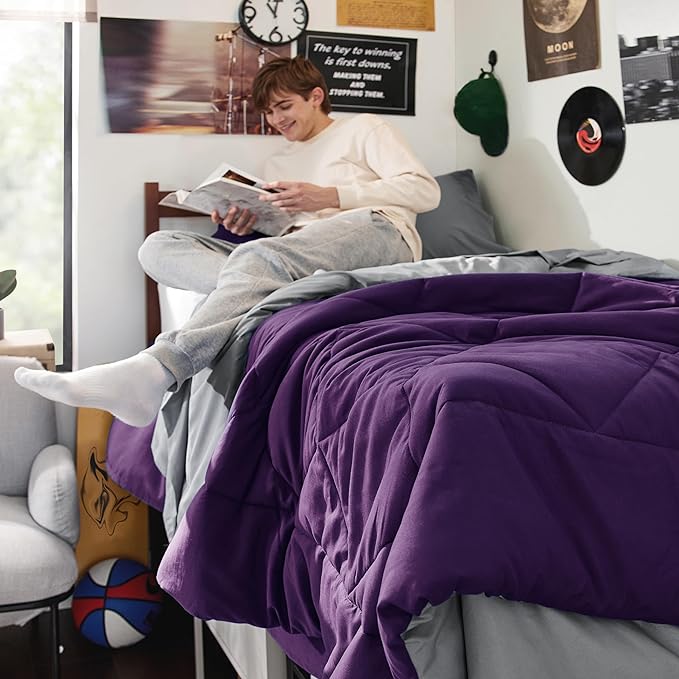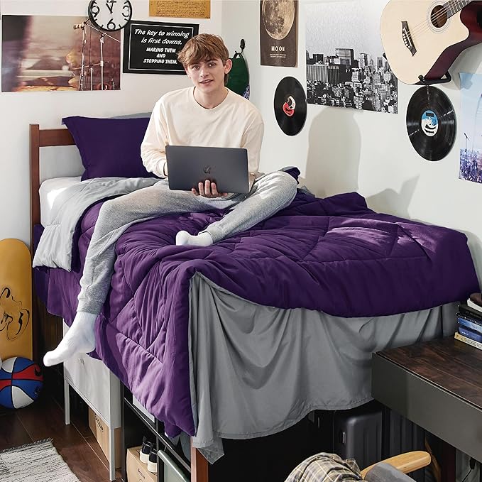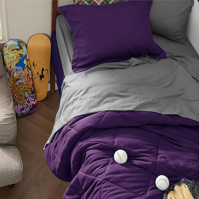 Bedsure Purple Twin XL Comforter Sets - 5 Pieces Reversible Twin XL Bedding Sets, Bed Sets Comforters, Sheets, Pillowcase & Sham, Grey XL Twin Bed in a Bag for College