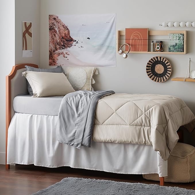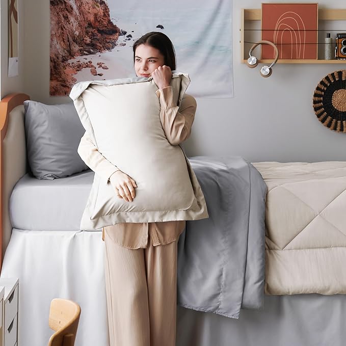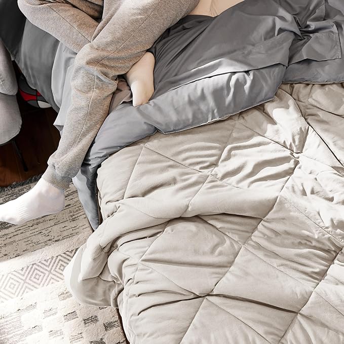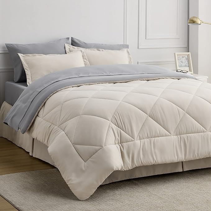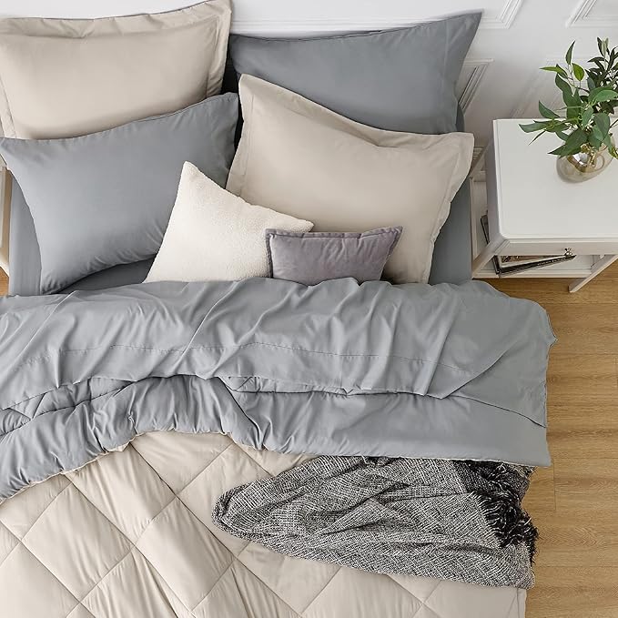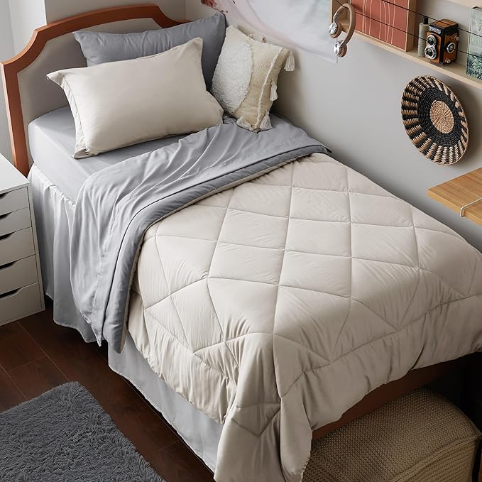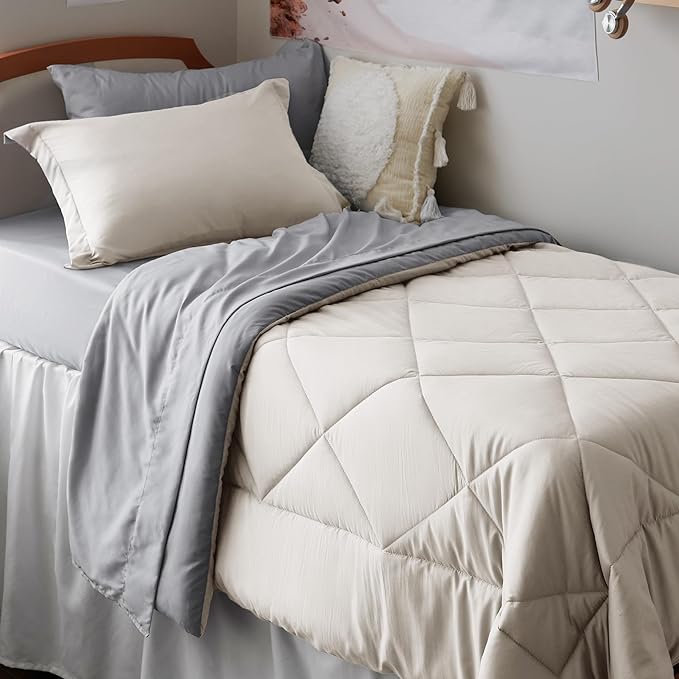 Bedsure Beige Twin XL Comforter Sets - 5 Pieces Reversible Twin XL Bedding Sets, Bed Sets Comforters, Sheets, Pillowcase & Sham, Grey XL Twin Bed in a Bag for College