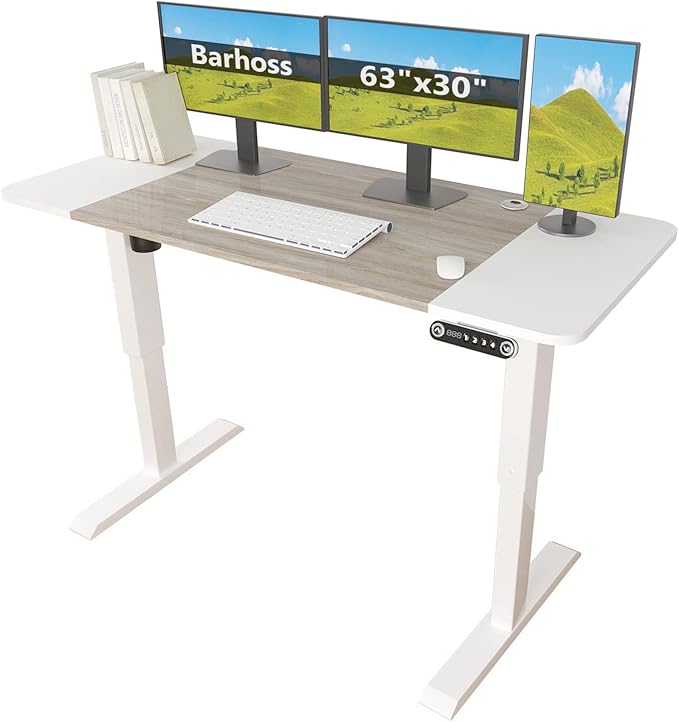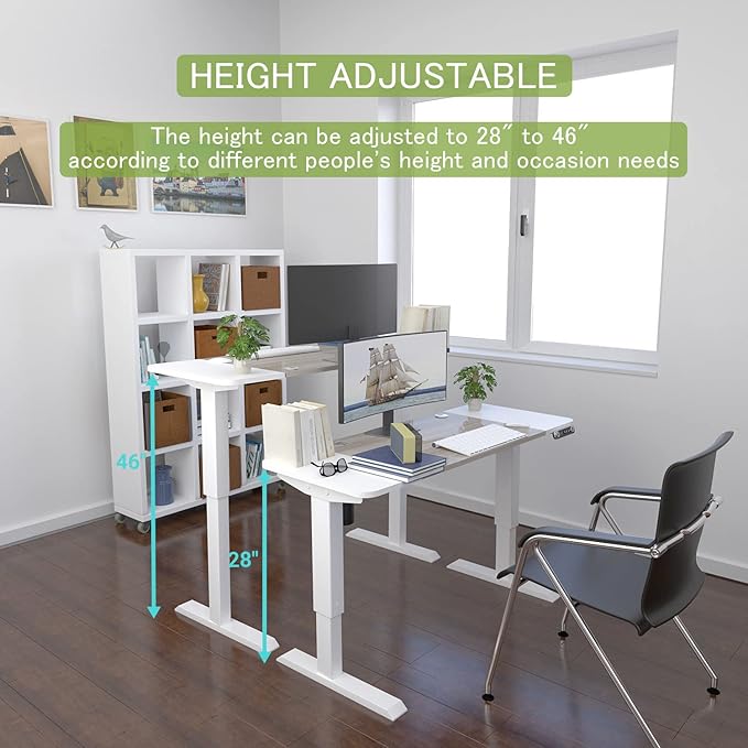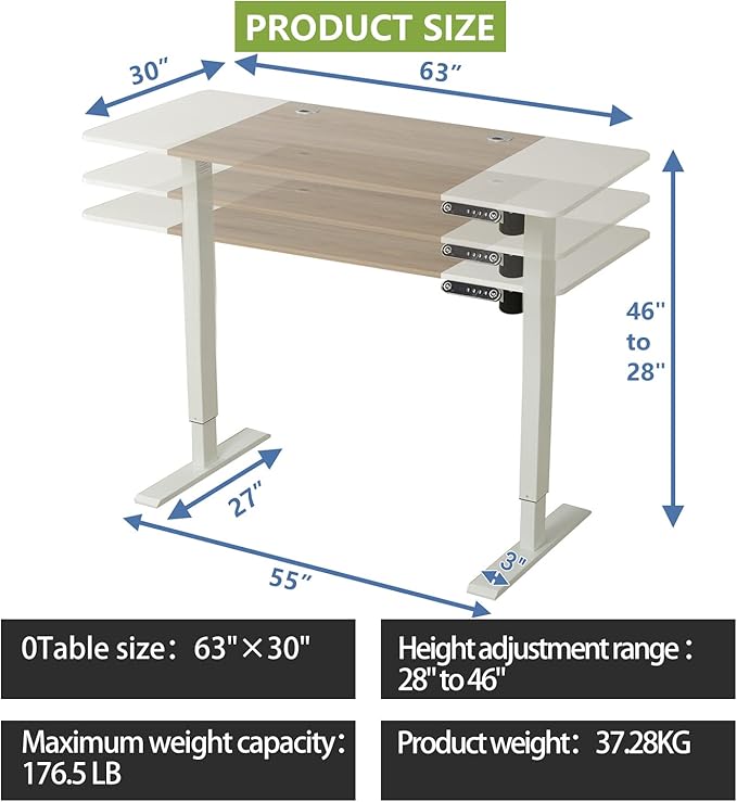Standing Desk Adjustable Height Desk,63x30Inches, Stand Up Desk Table for Home Office, Home Office Computer Desk,Memory Preset,Height adjustments from 28" to 46" White&Oak