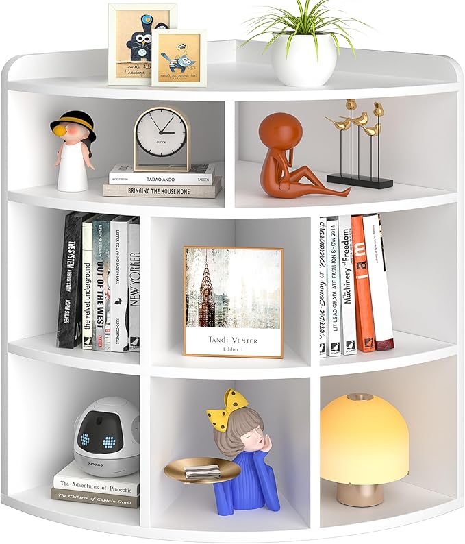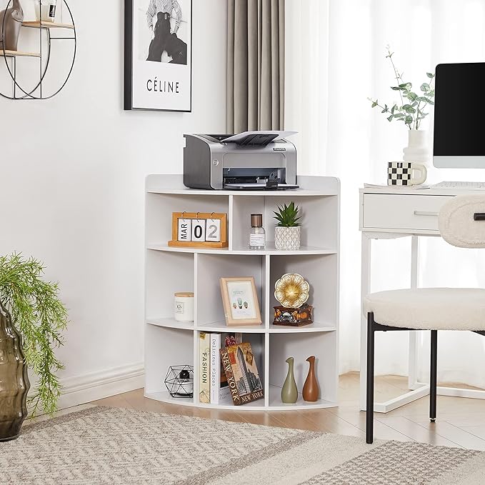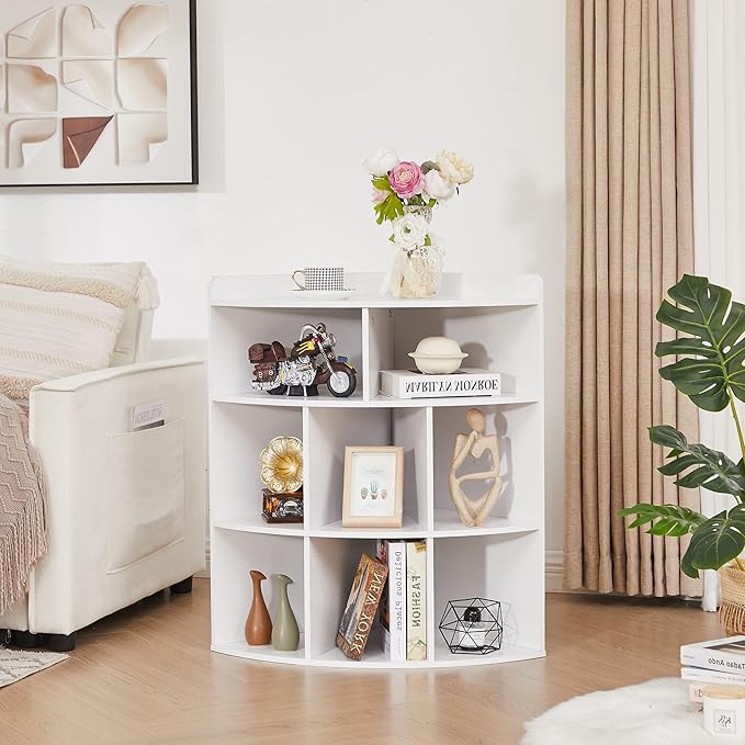 Vecelo 3-Tier Corner Cabinet with 8 Cubbies, Wooden Cube Storage Organizer, Modern Bookshelf Units for Playroom, Bedroom, Living Room,Ivory White