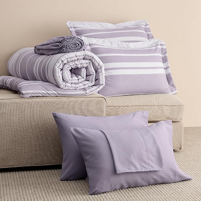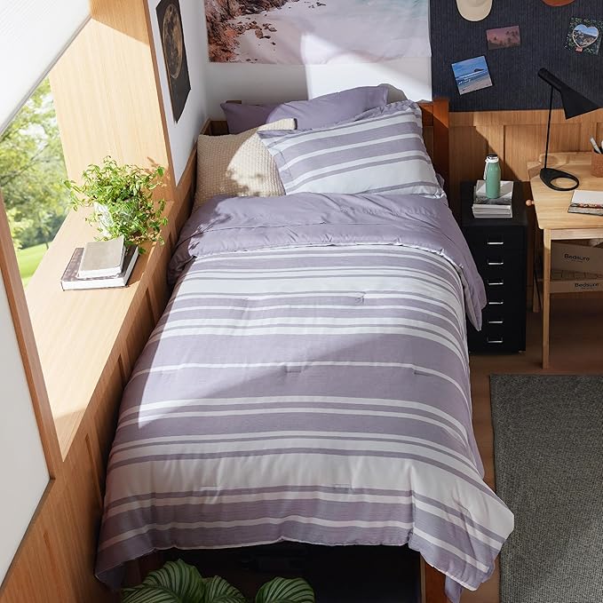 Bedsure Twin XL Comforter Set, Extra Long 5 Pieces Purple Striped Twin XL Bedding Sets, All Season Dorm Room Essentials with 1 Pillow Sham, Flat Sheet, Fitted Sheet and 1 Pillowcase