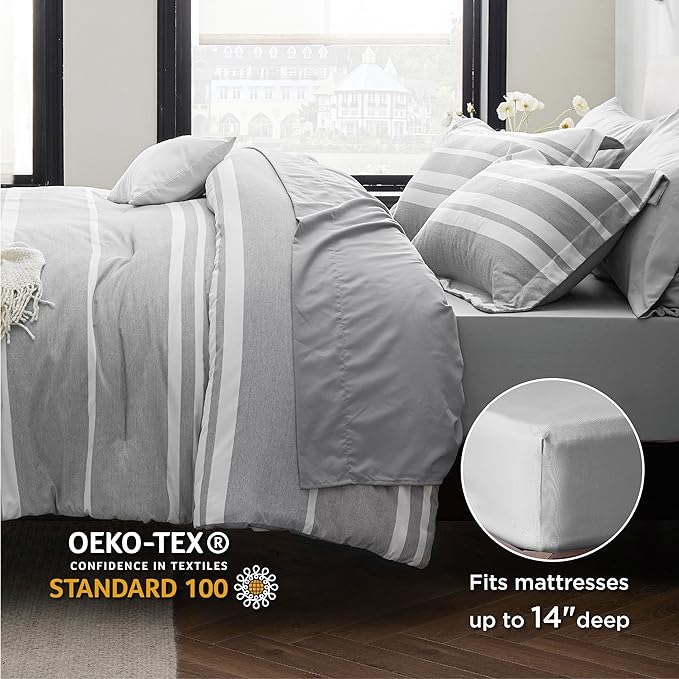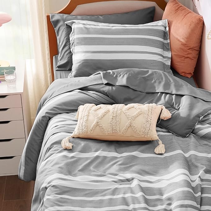 Bedsure Extra Long Twin XL Comforter Set, Grey Twin XL Bedding Set, All Season Dorm Room Essentials with 1 Pillow Sham, Flat Sheet, Fitted Sheet and 1 Pillowcase