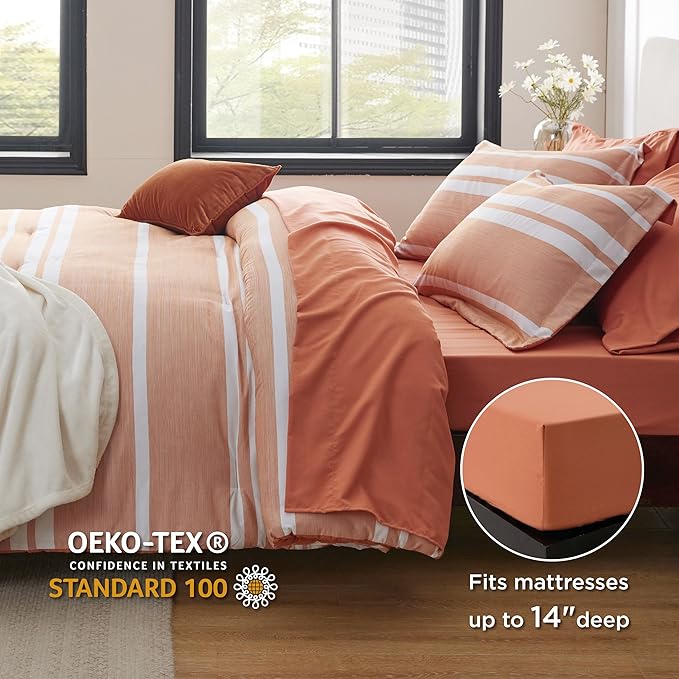 Bedsure Twin XL Comforter Set, Extra Long 5 Pieces Burnt Orange Twin XL Bedding Sets, All Season Dorm Room Essentials with 1 Pillow Sham, Flat Sheet, Fitted Sheet and 1 Pillowcase