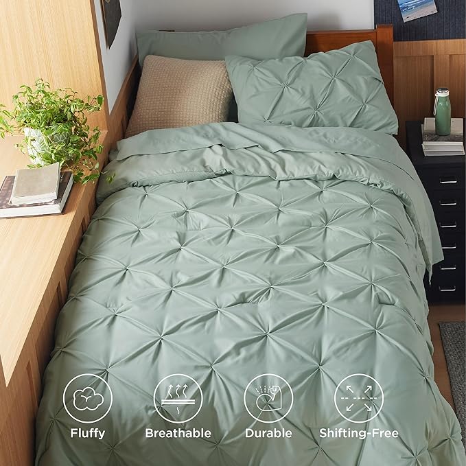Bedsure Twin XL Comforter Set - Extra Long 5 Pieces Dorm Bedding Sets, Pinch Pleat Bed in a Bag with Comforter, Sheets, Pillowcase & Sham