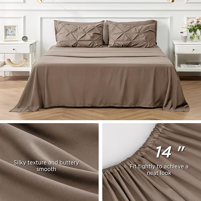 Bedsure King Size Comforter Set - Bedding Set King 7 Pieces, Pintuck Bed in a Bag Brown Bed Set with Comforter, Sheets, Pillowcases & Shams
