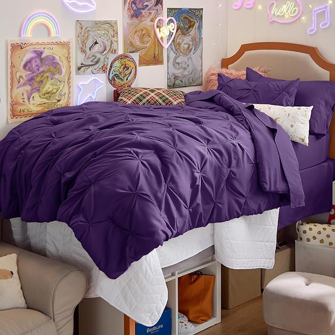 Bedsure Twin XL Comforter Set - Extra Long 5 Pieces Dorm Room Essentials, Pinch Pleat Bed in a Bag with Comforter, Sheets, Pillowcase & Sham