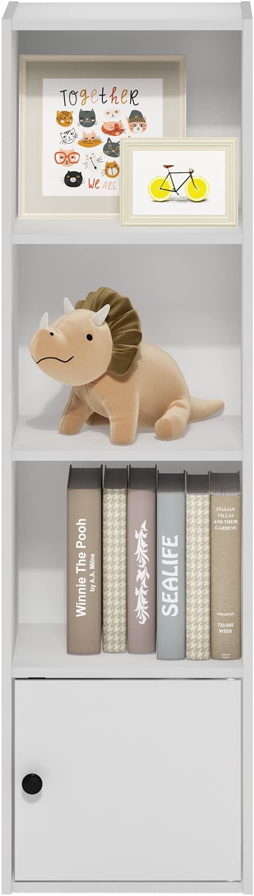 Furinno Luder Shelf Bookcase with 1 Door Storage Cabinet, White
