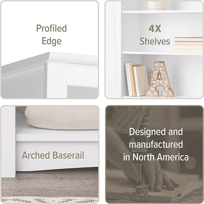 Prepac Home Office 4-Shelf Standard Bookcase, 31.5 in. W x 48 in. H x 13 in. D, White