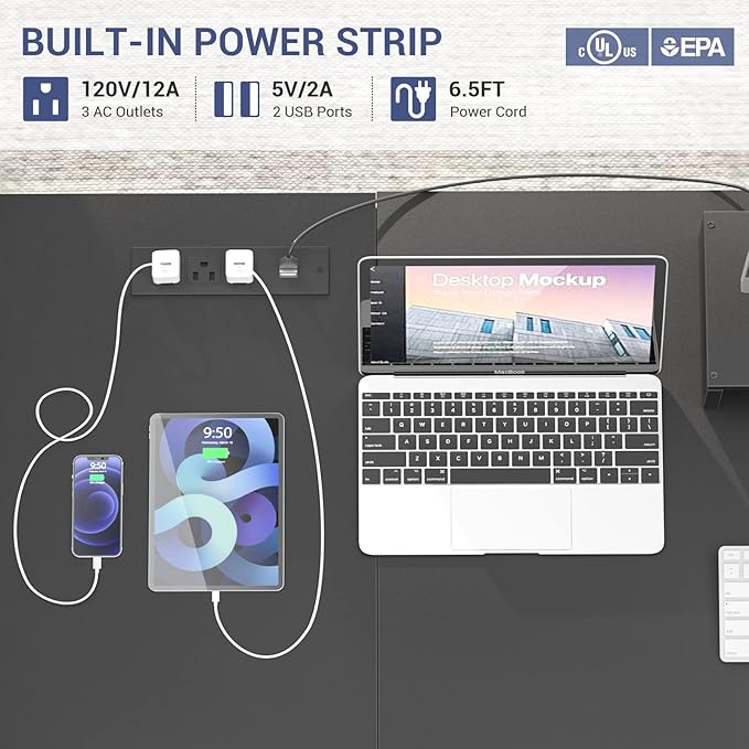 About This 【L Desk with Power Outlets& USB Ports】The small L-shaped computer desk comes with 3 Outlets& 2 USB ports,...
