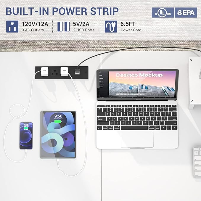 About This 【L Desk with Power Outlets& USB Ports】The small L-shaped computer desk comes with 3 Outlets& 2 USB ports,...